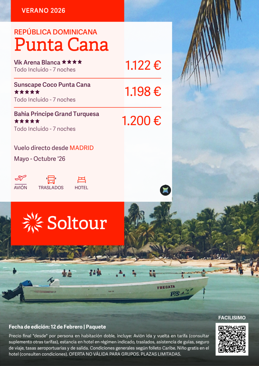 Punta Cana en Vik Arena Blanca, Sunscape Coco Punta Cana o Bahia Principe Grand Turquesa desde 1.122€, salidas desde Madrid